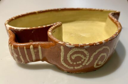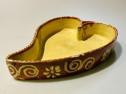 Assadeira de barro vidrado antigo do Minho em forma de coração, decorada com espirais e flores Dimensão: 34 cm Em boas condições, sem rachas ou quebras, raro nesta condição