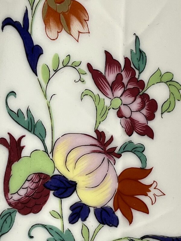 Covilhete da Vista Alegre policromado com flores e borboletas 23.5 cm x 15.5 cm Em muito bom estado de conservação