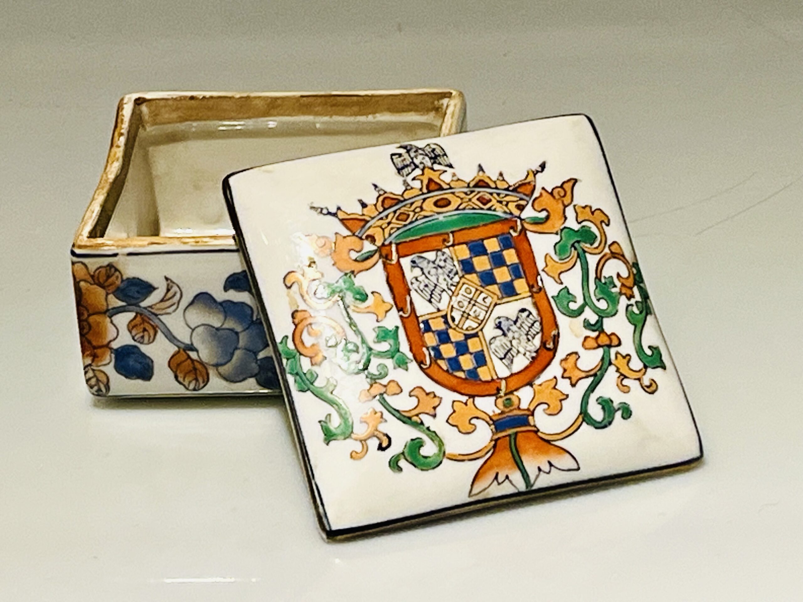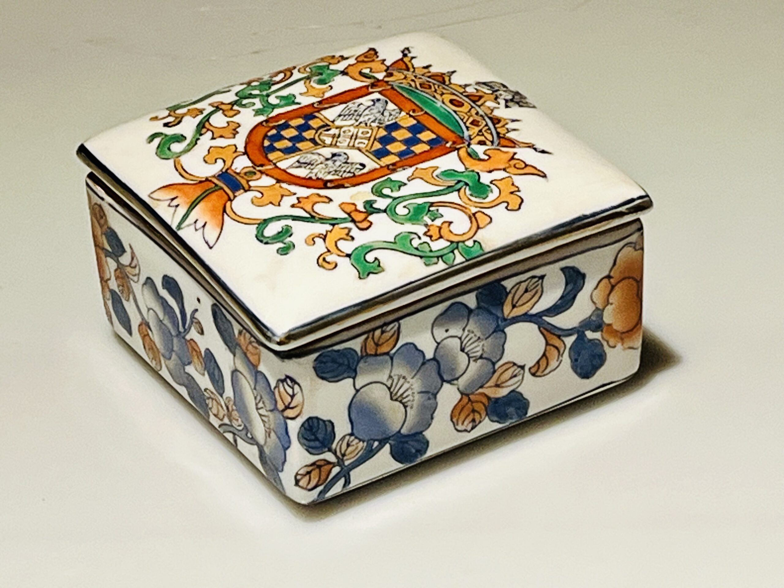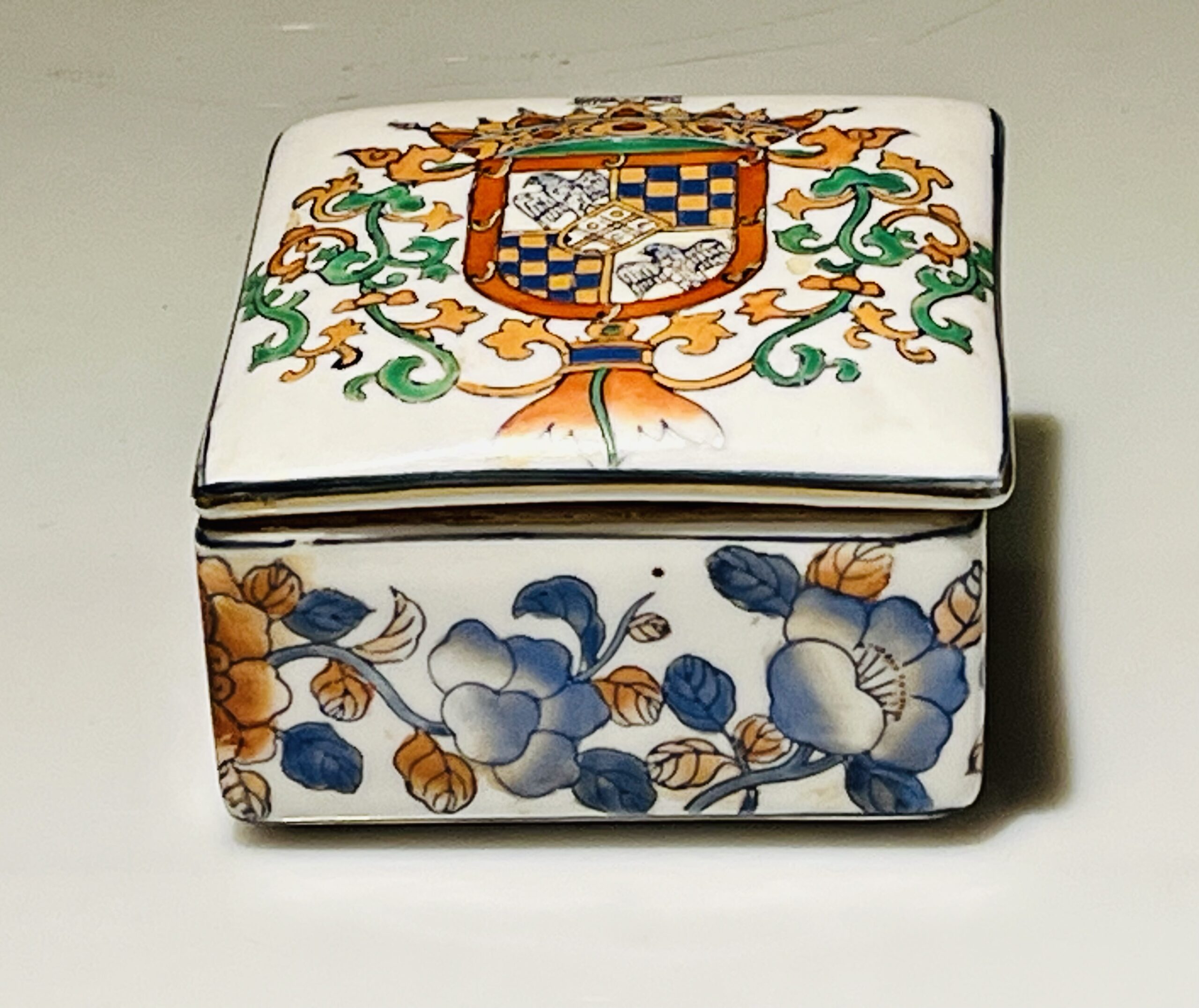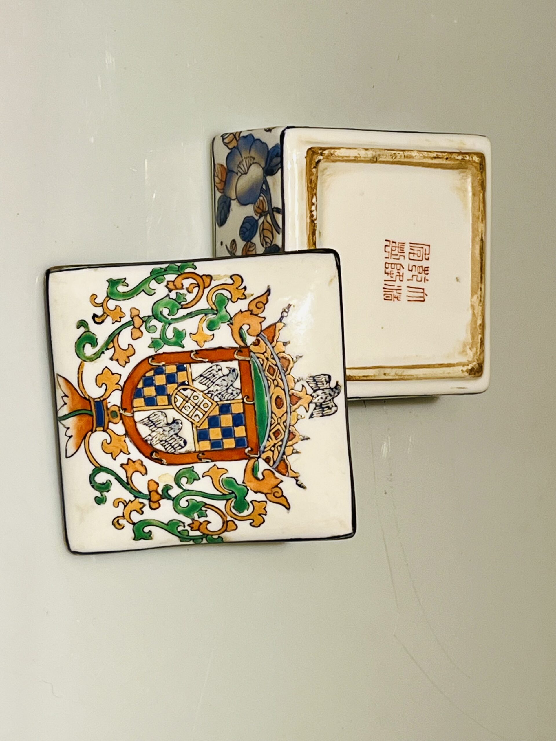 Pequena Caixa em porcelana Chinesa com armas do Vice Rei da India Francisco de Sampaio Melo e Castro e decoração Imari pintada á mão