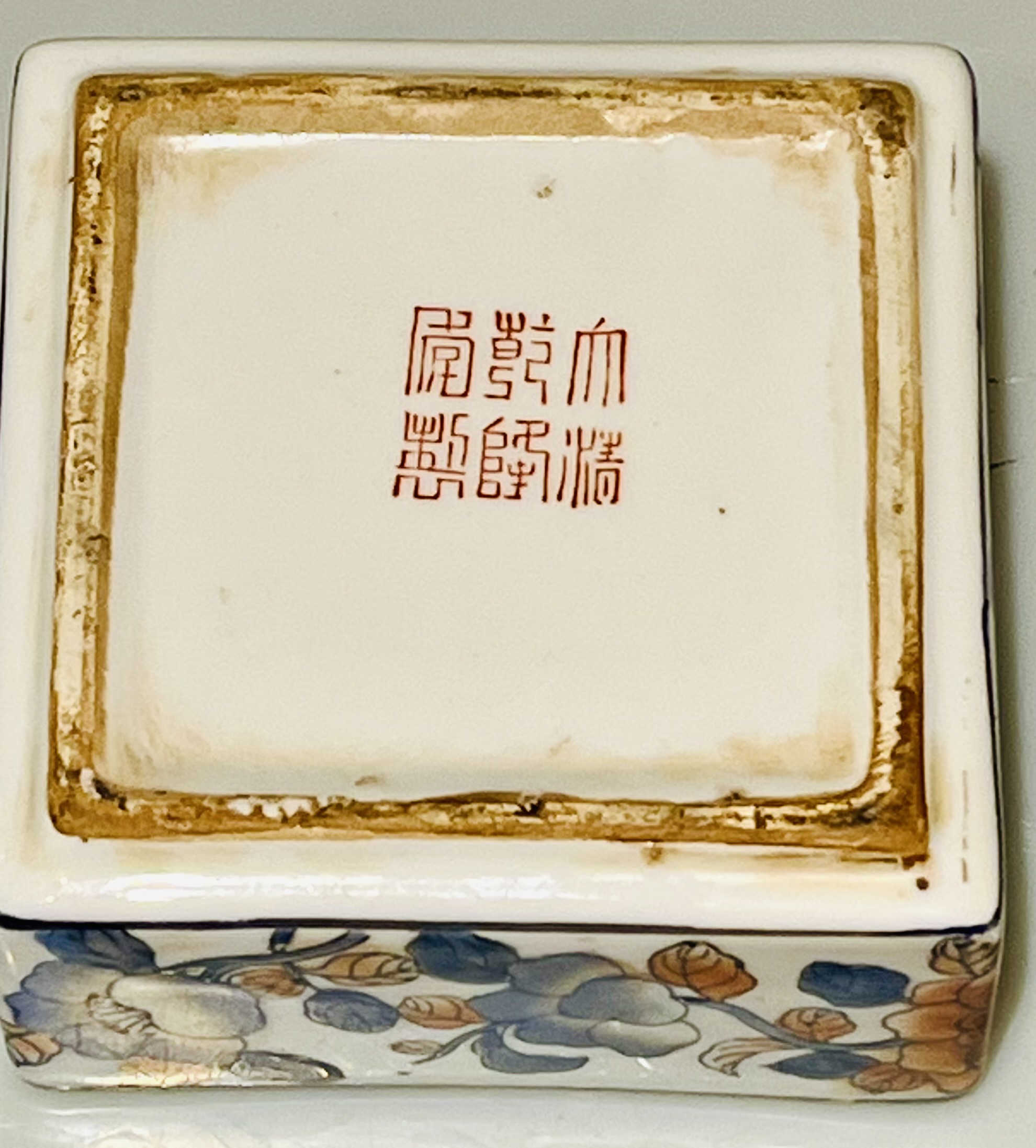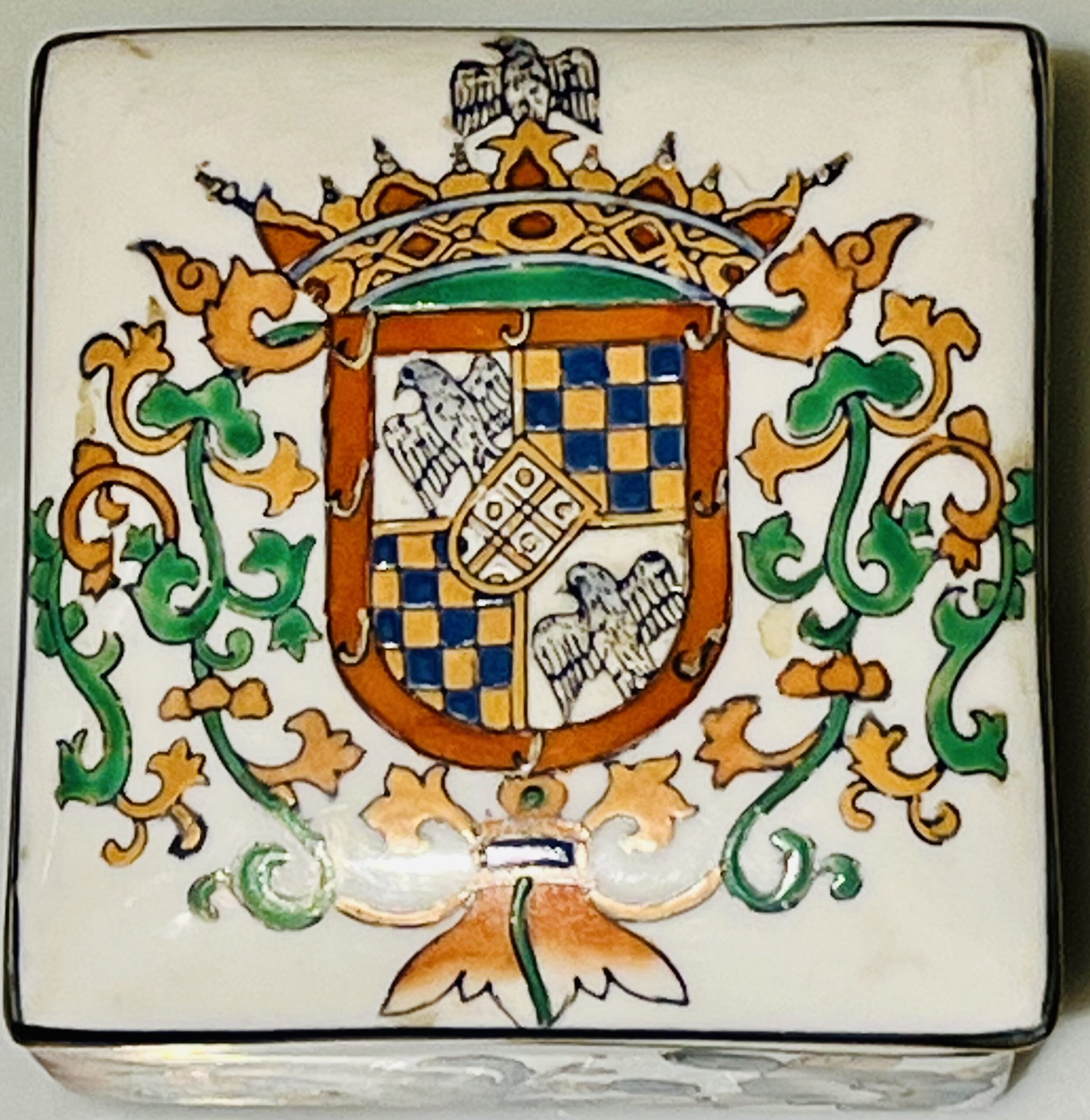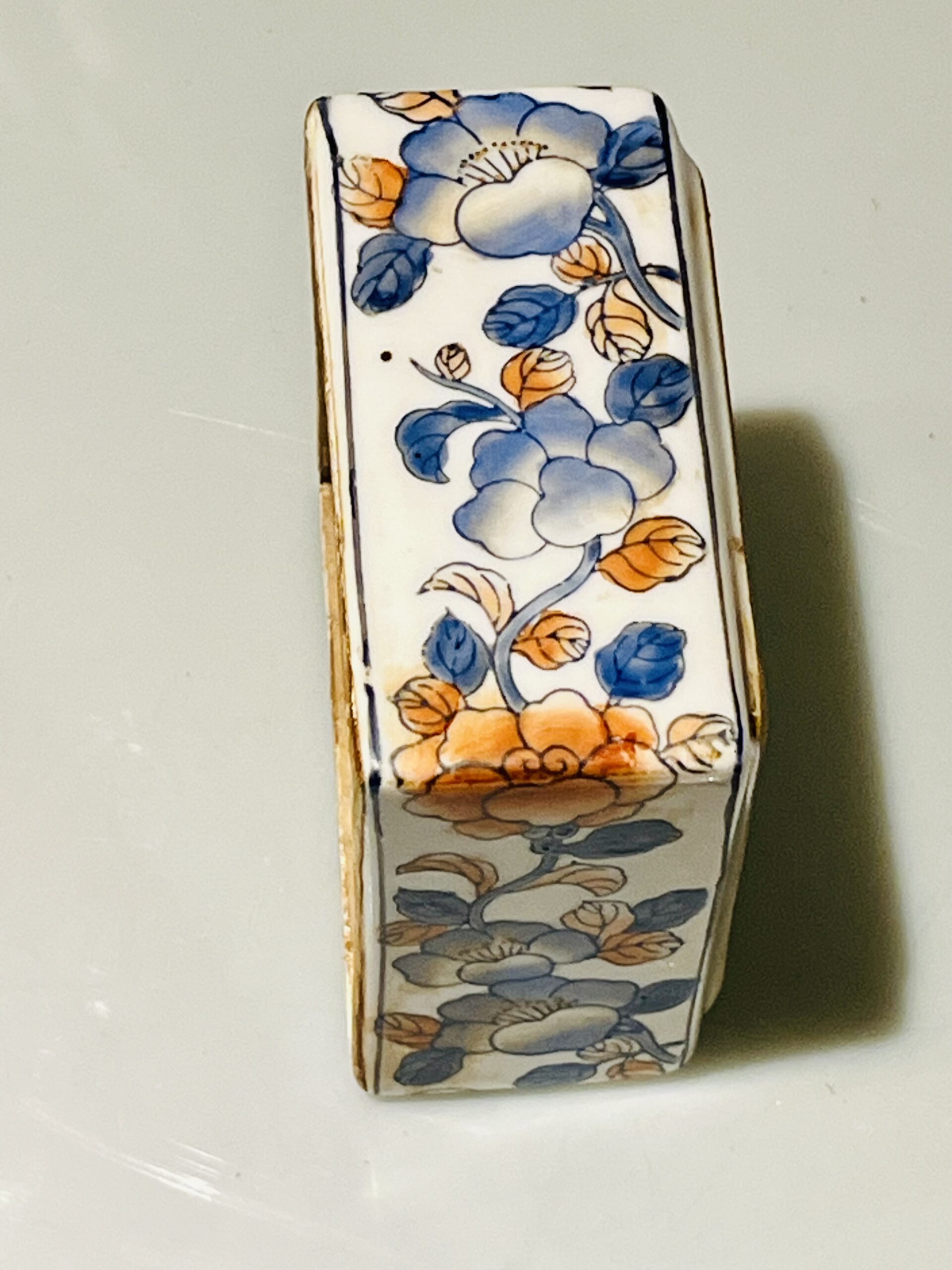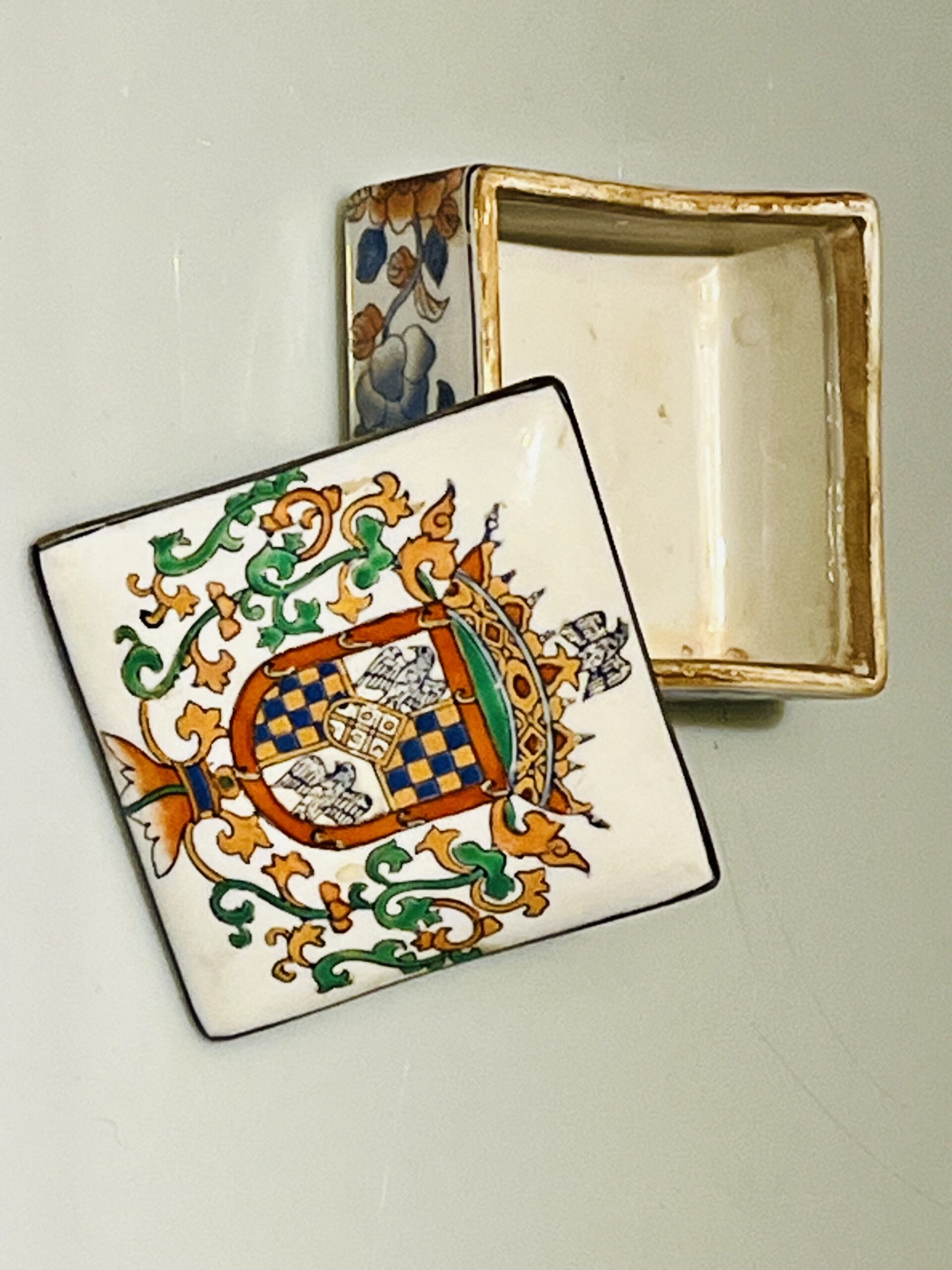 Pequena Caixa em porcelana Chinesa com armas do Vice Rei da India Francisco de Sampaio Melo e Castro e decoração Imari pintada á mão