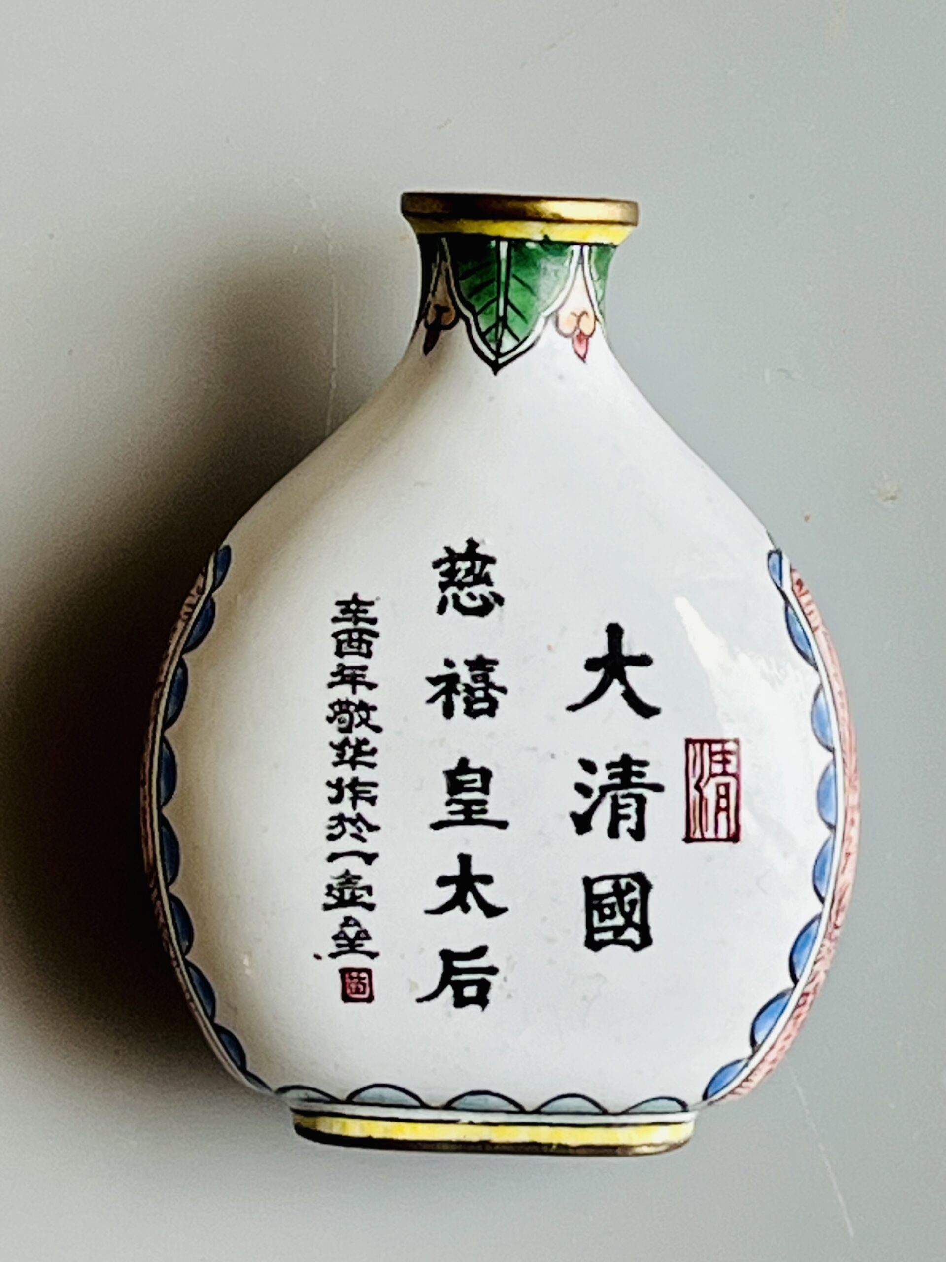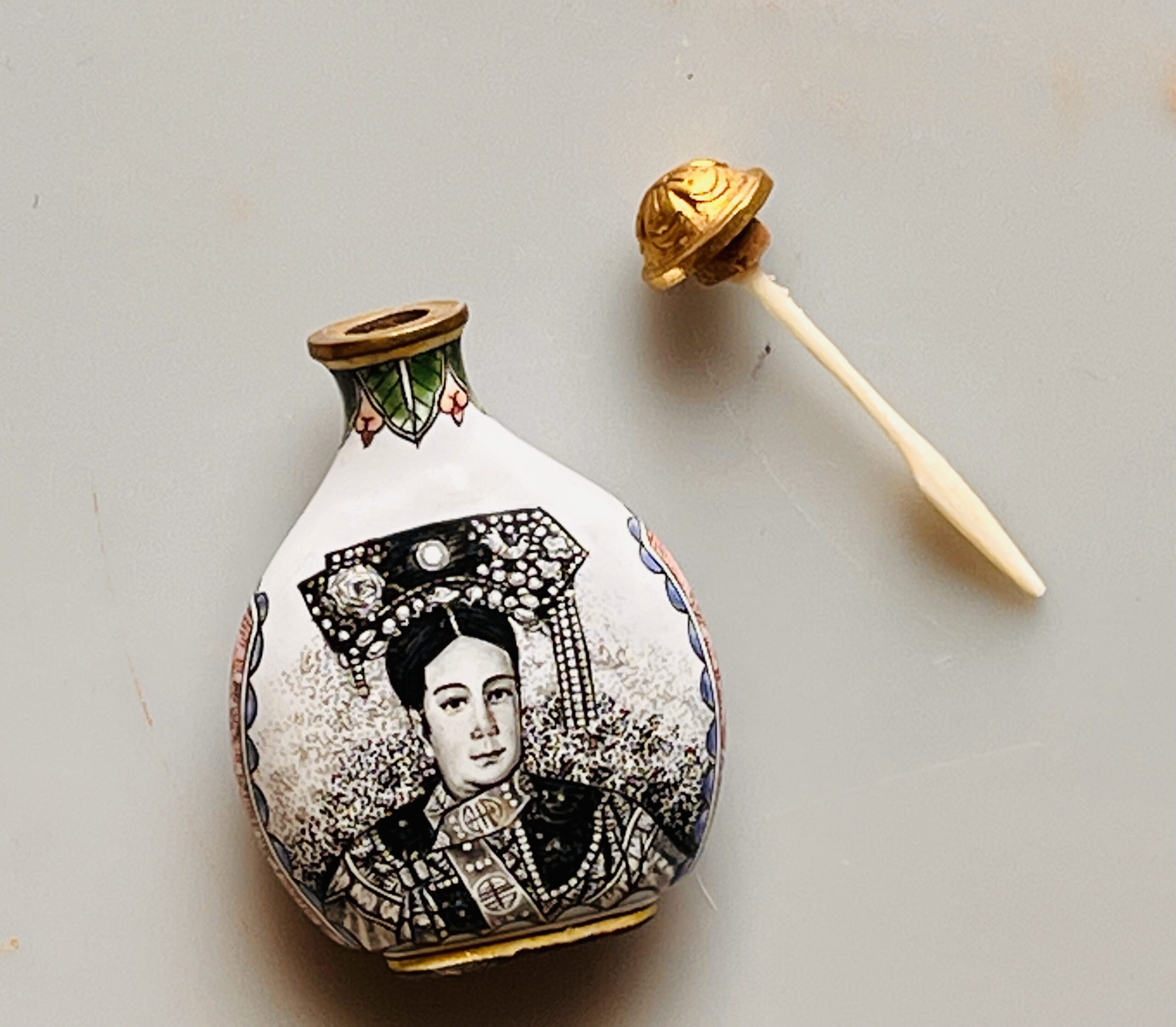 Bonito frasco Snuff Botle com a imagem da Imperatriz Cixi, dtdo de 1921