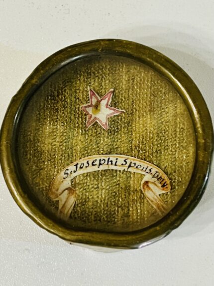 Placa de porcelana pintada de jovem religiosa com moldura em madeira e friso metálicoamanho: