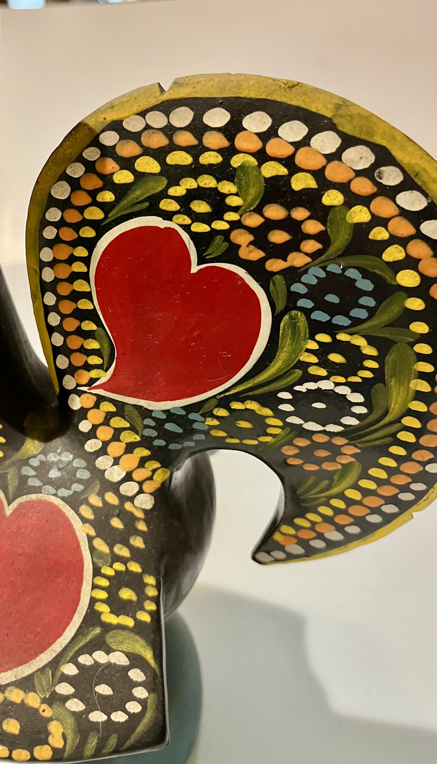 Antigo Galo de Barcelos em barro, cerca 1960, policromado com cores tradicionais minhotas, original e da época