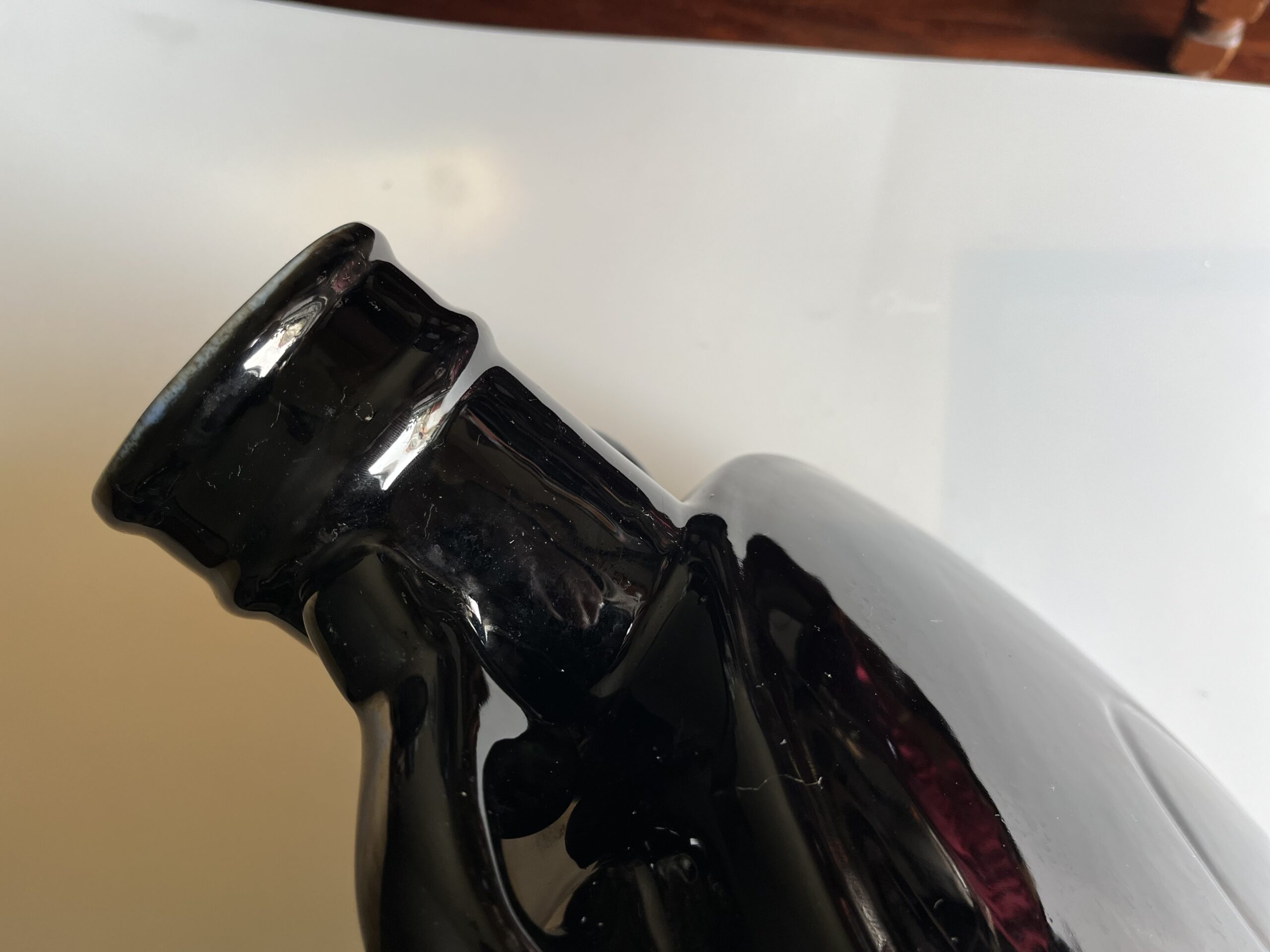 Vaso chinês em forma de “frasco lunar” em porcelana da “família negra”, meados Séc XX