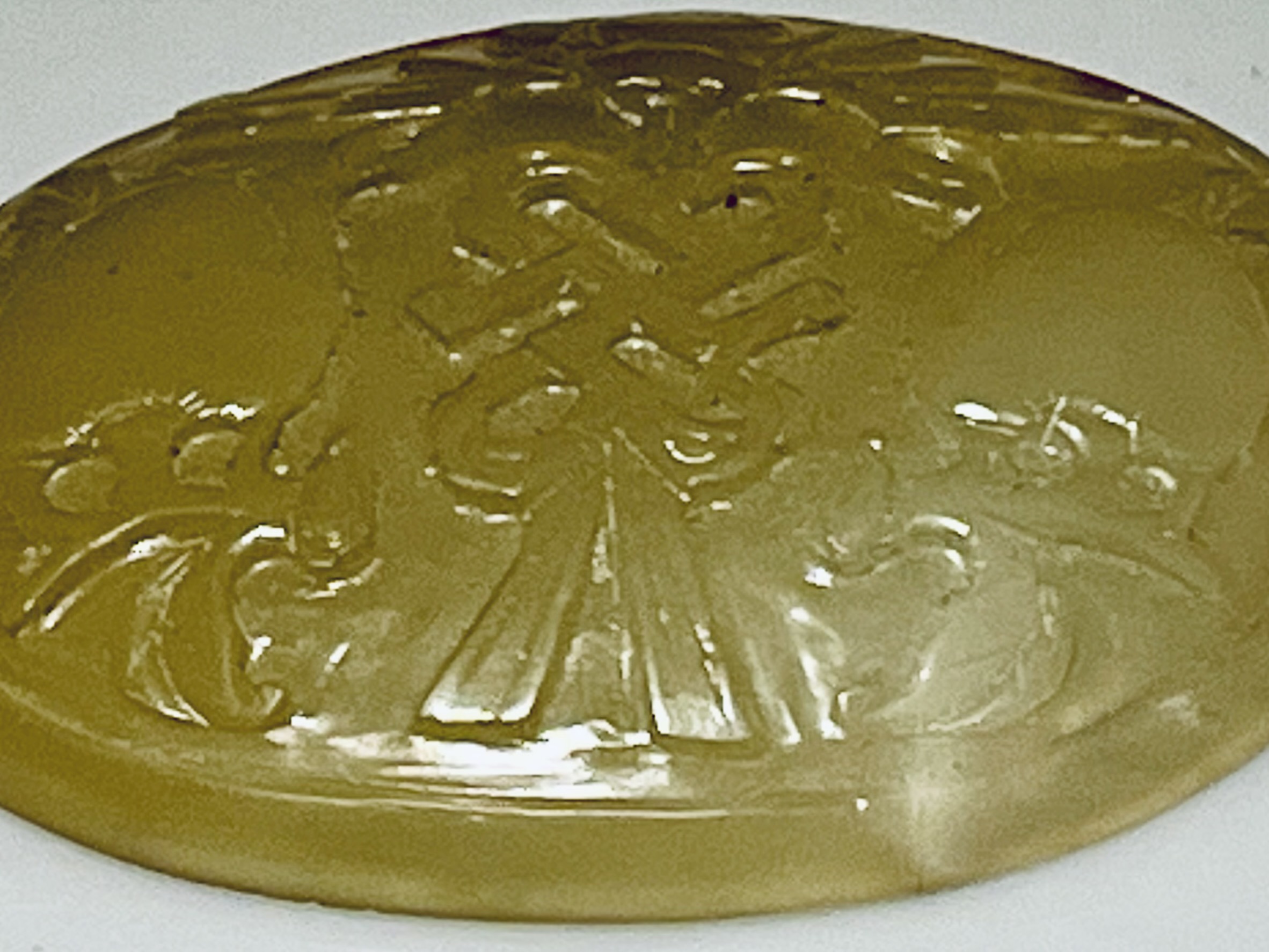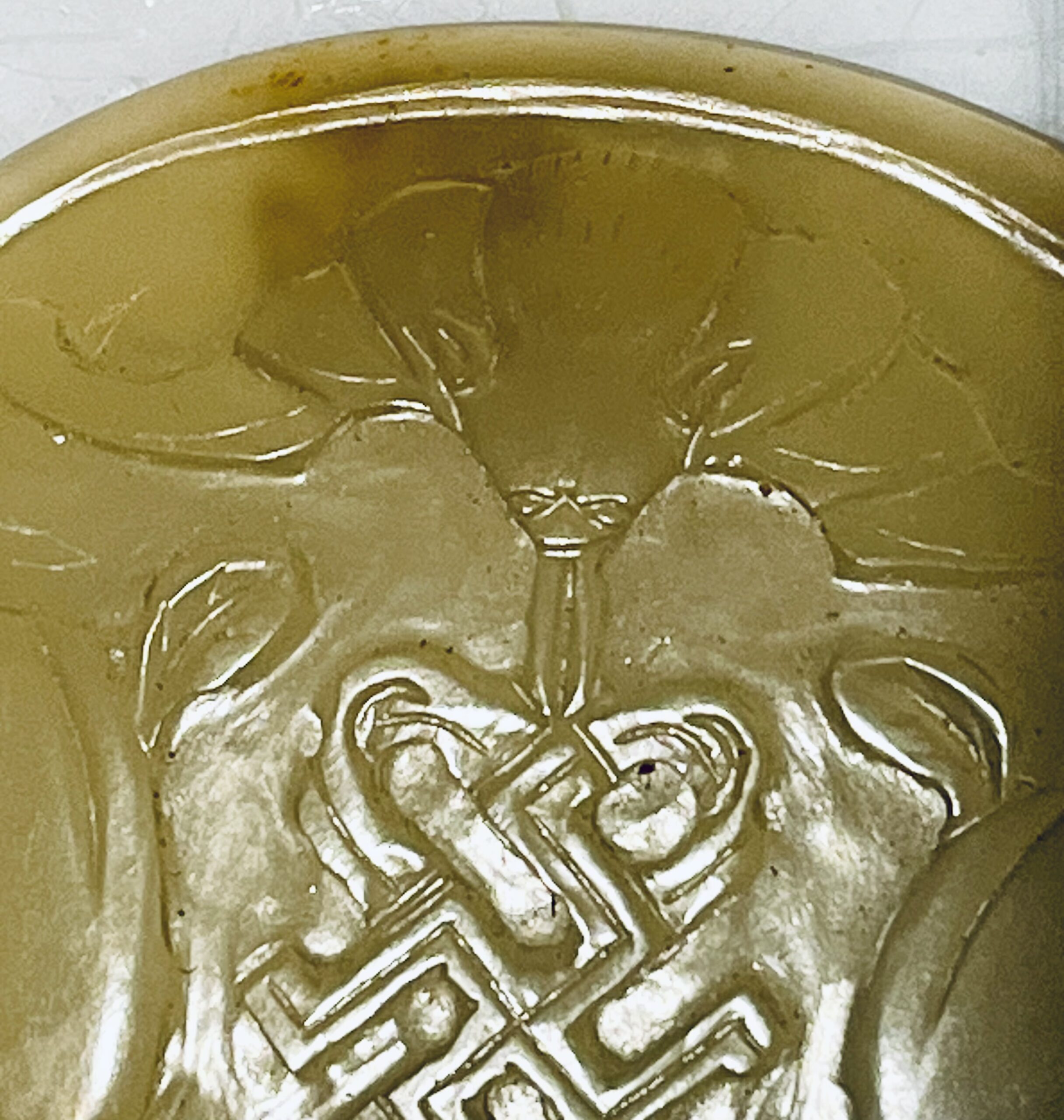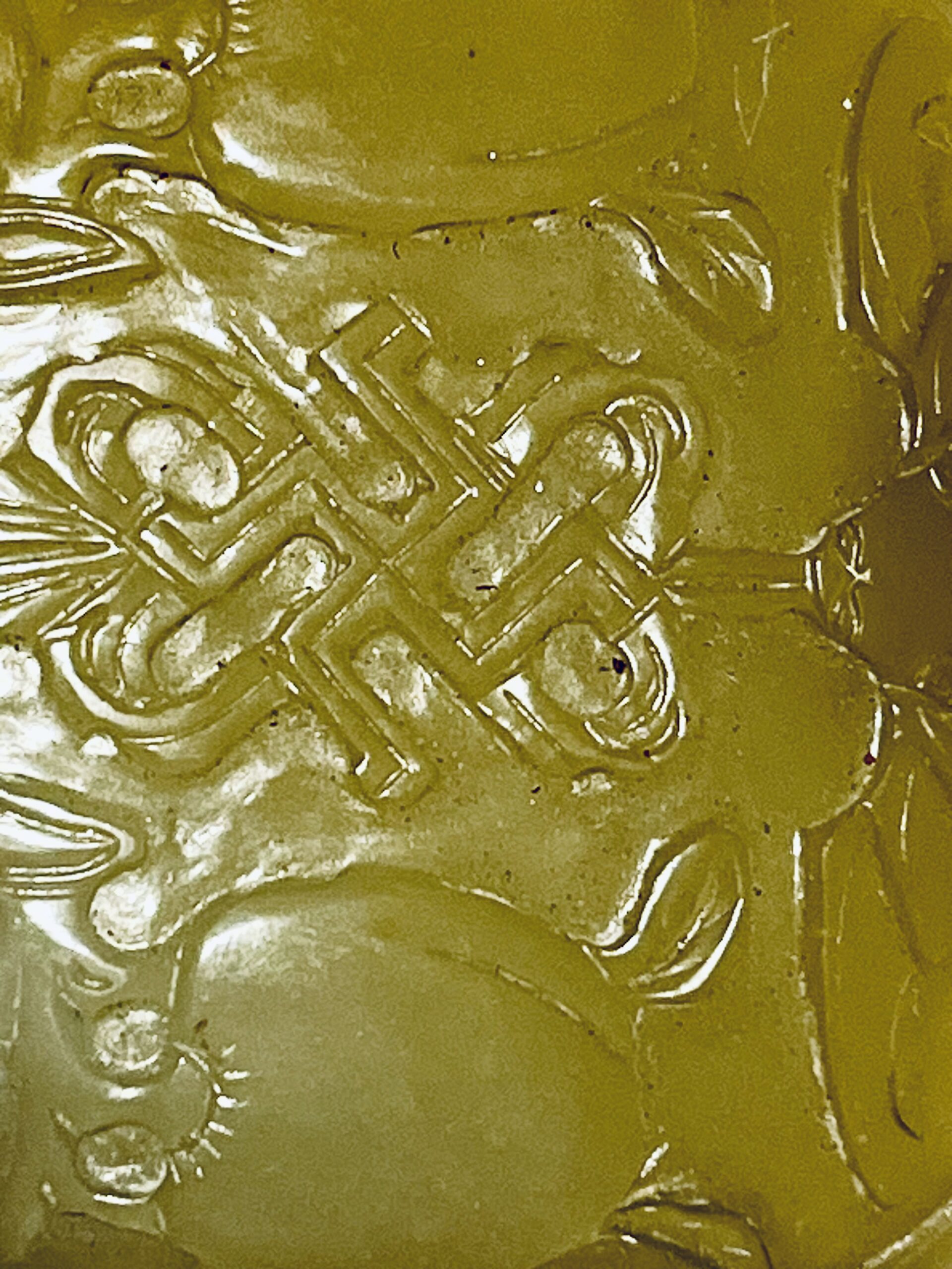 Medalhão em jade, com motivos florais e símbolos chineses, Séc. XIX