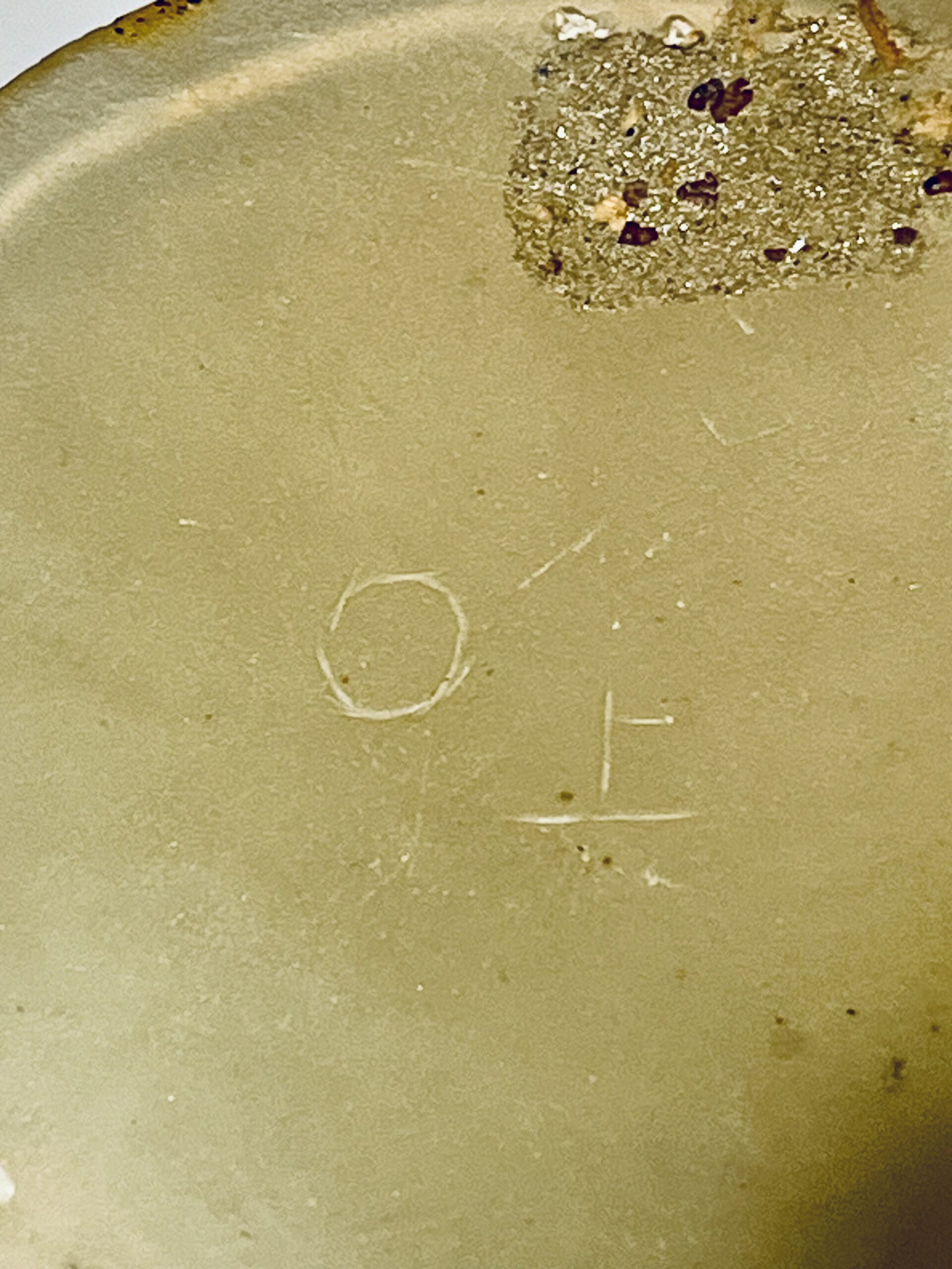 Em boas condições, sem rachaduras ou fios, ligeiros desgastes, marcas e sinais de uso e idade. Uma das pegas apresenta uma pequena lasca, conforme é possível ver na foto, de resto em boas condições