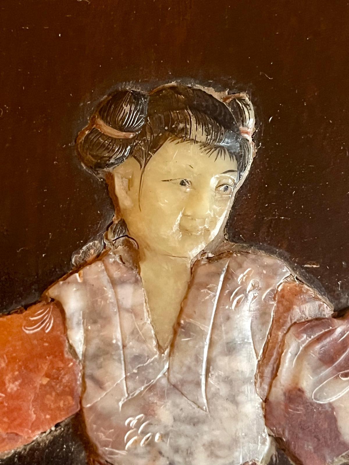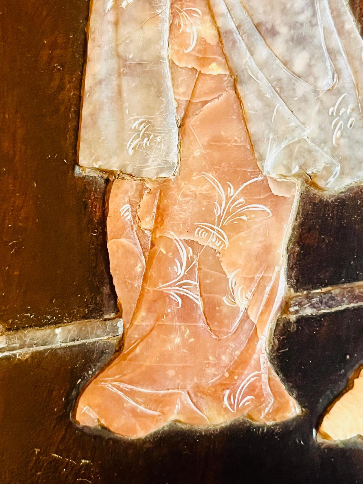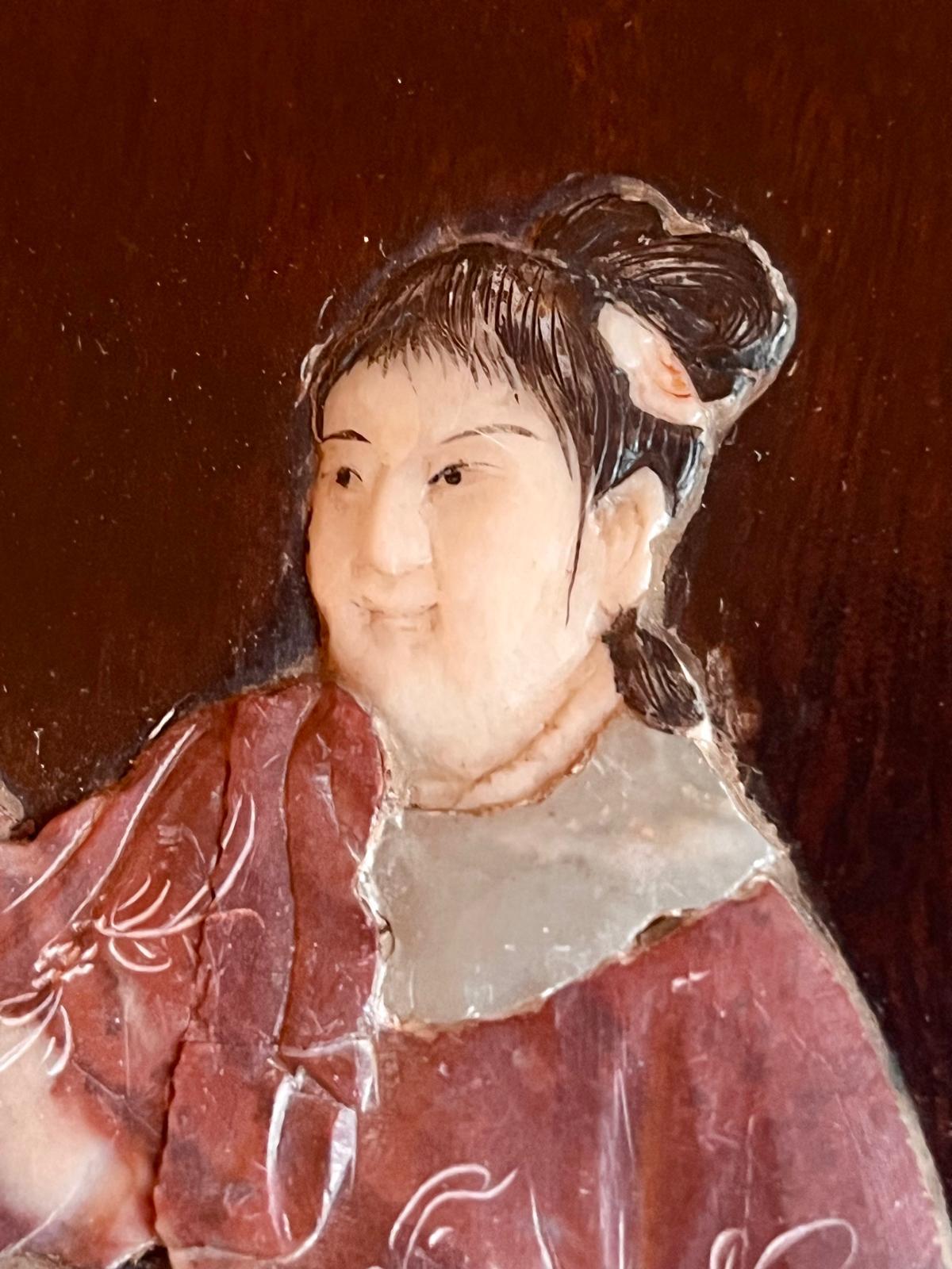 Painel de madeira Jacarandá com figuras incrustadas em pedra, China