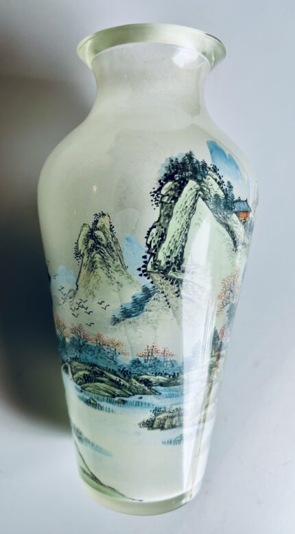 Jarra em vidro decorada com paisagens de montanhas, pintura submersa interior, Período República, (1912-1949)