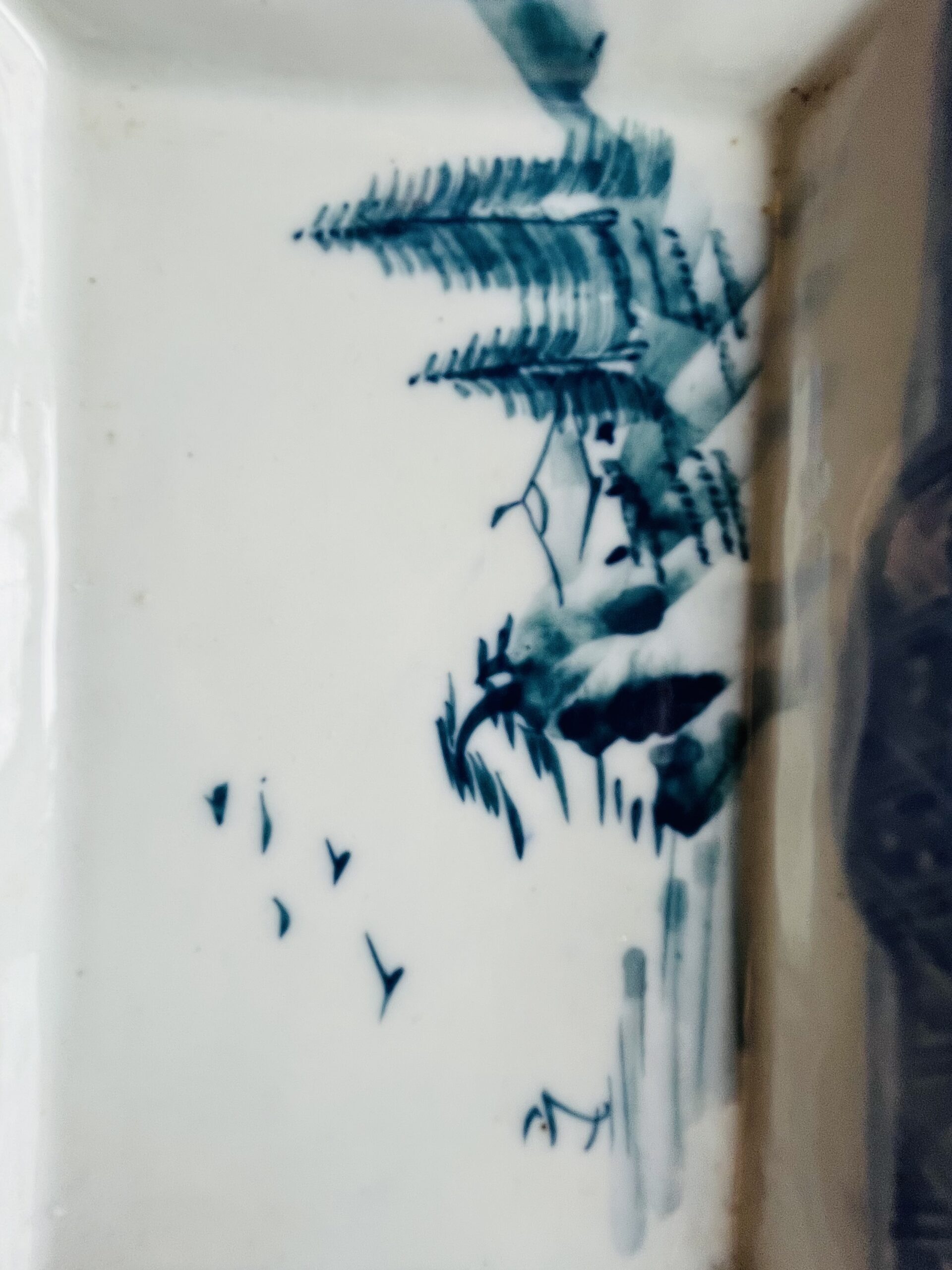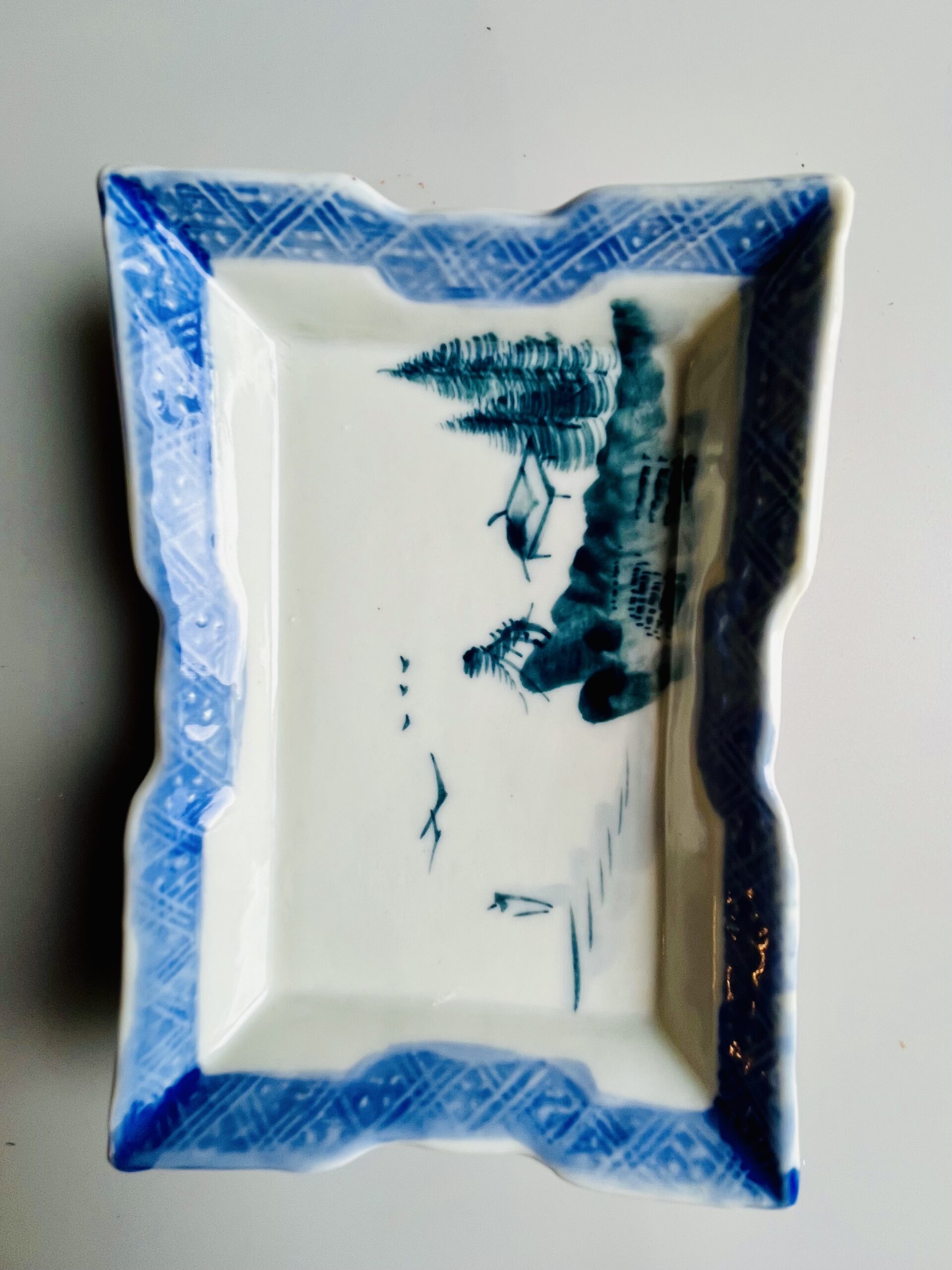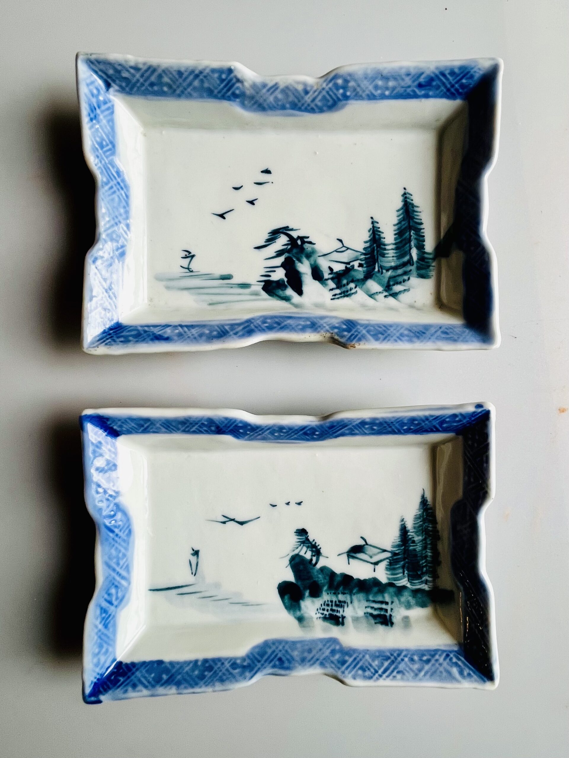 Par de pequenos pratos para guarnição em porcelana chinesa, decorados com paisagens em azul e branco