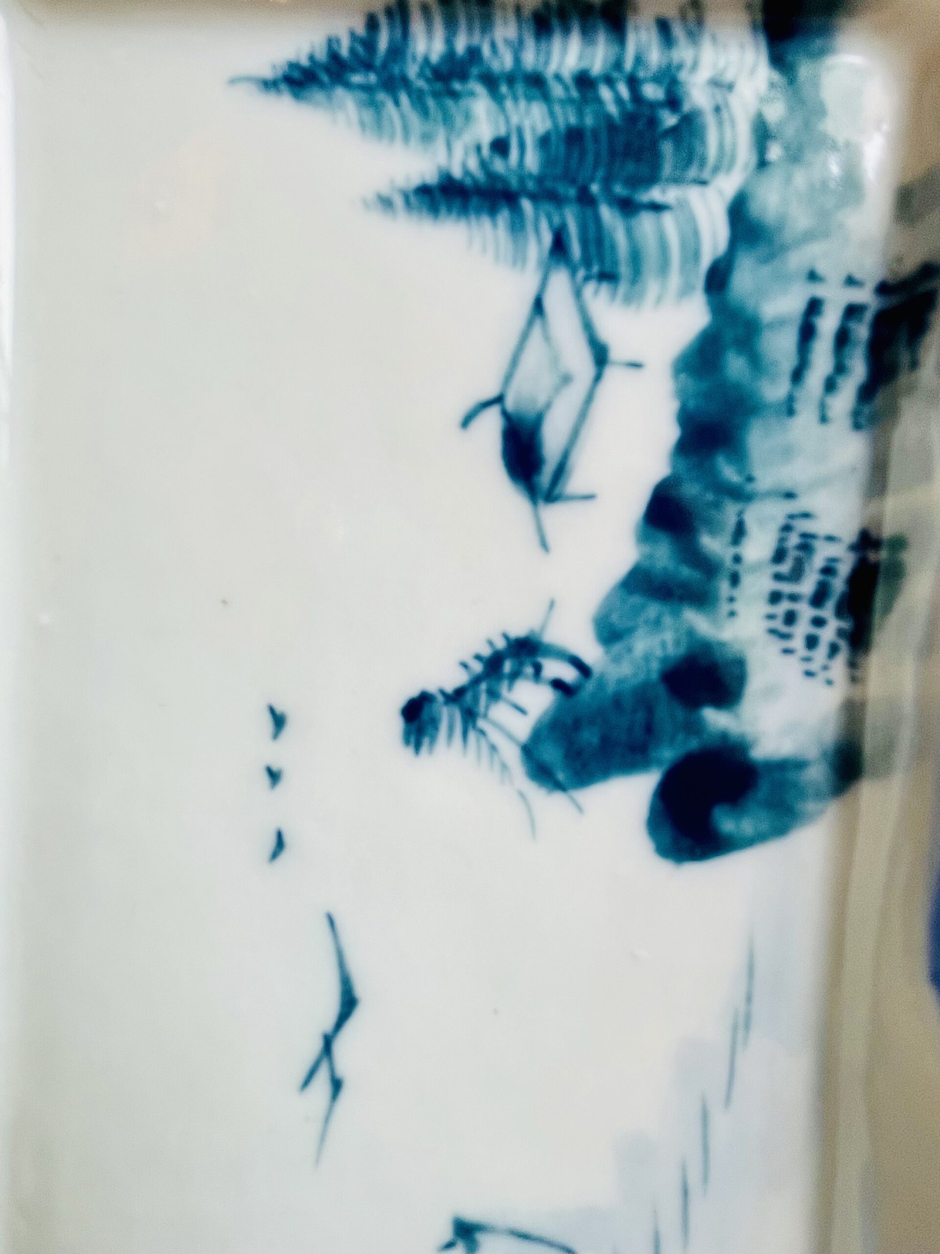 Frasco de chá com tampa em porcelana chinesa, decorado com paisagens e montanhas a azul e branco