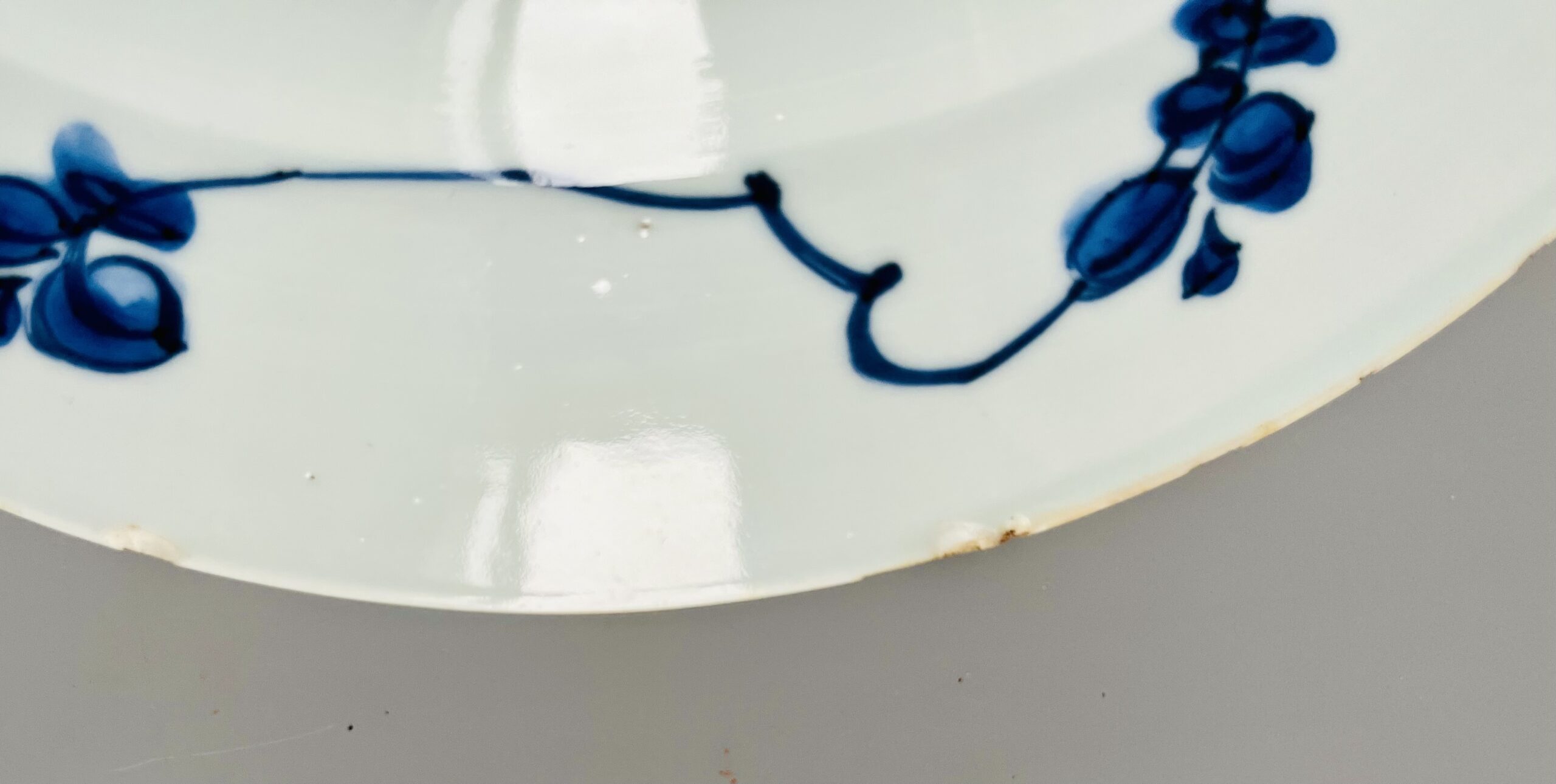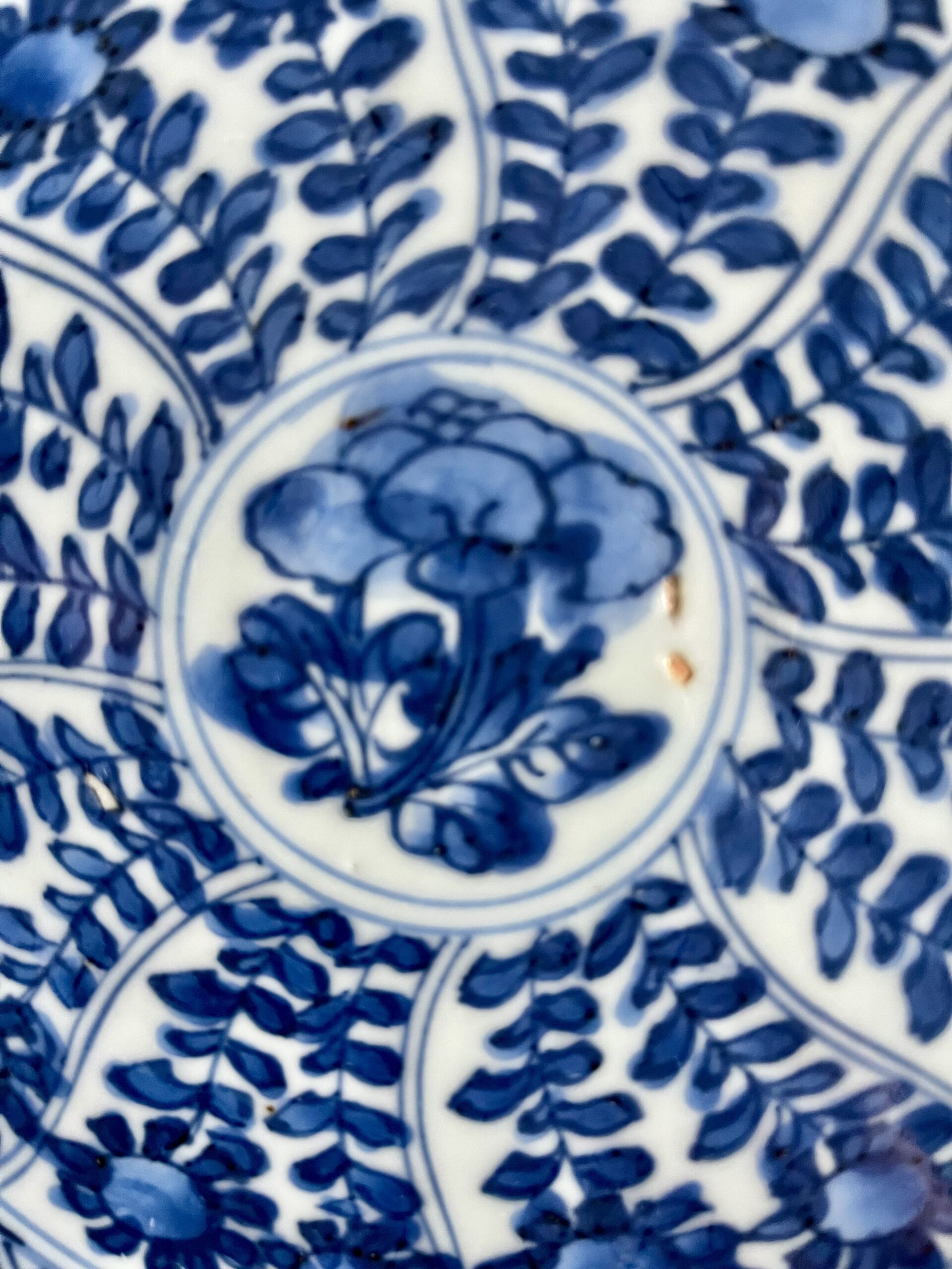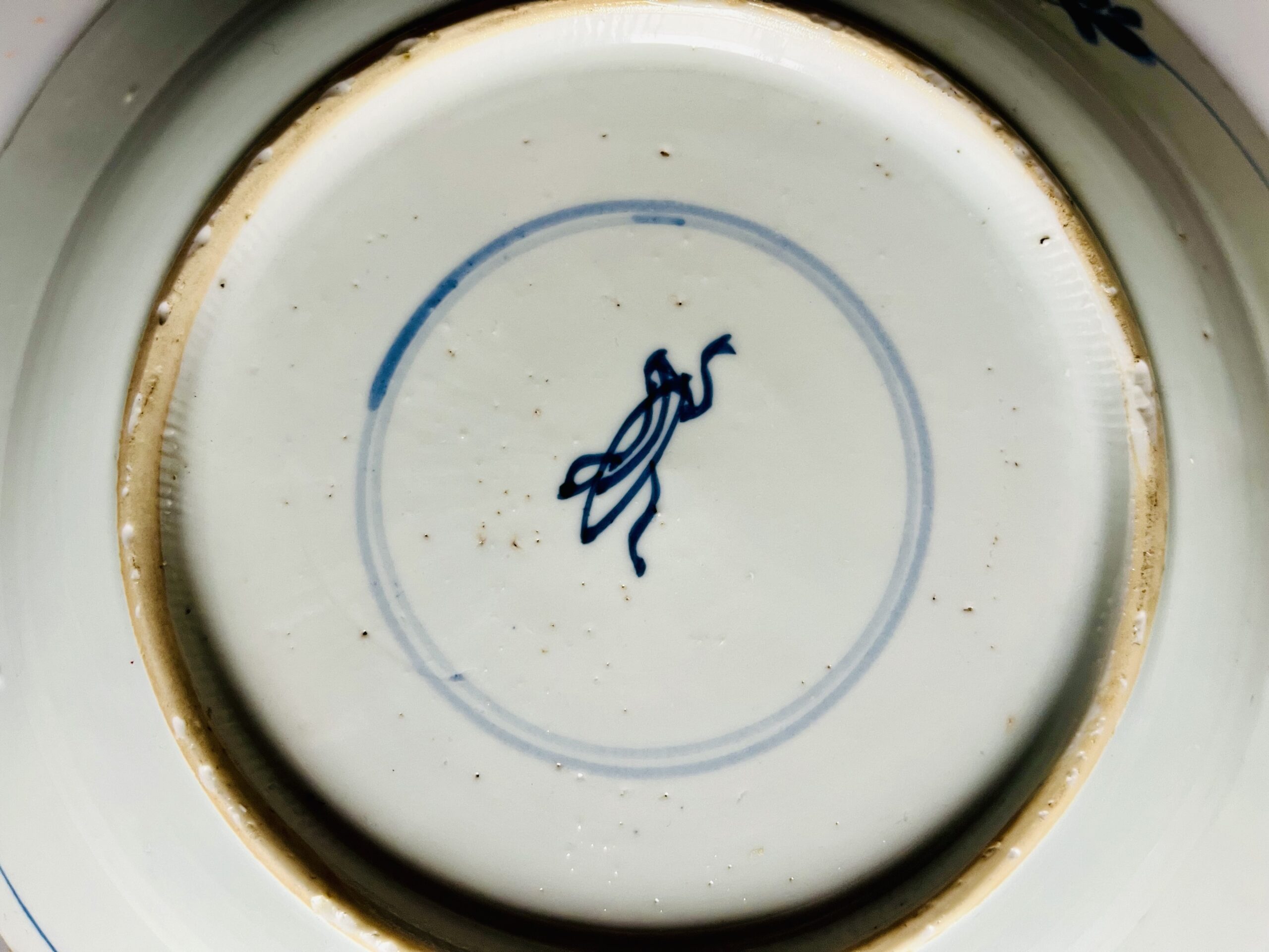 Prato em porcelana chinesa azul e branco, decoração floral, período Kangxi (1662-1772), marcado.