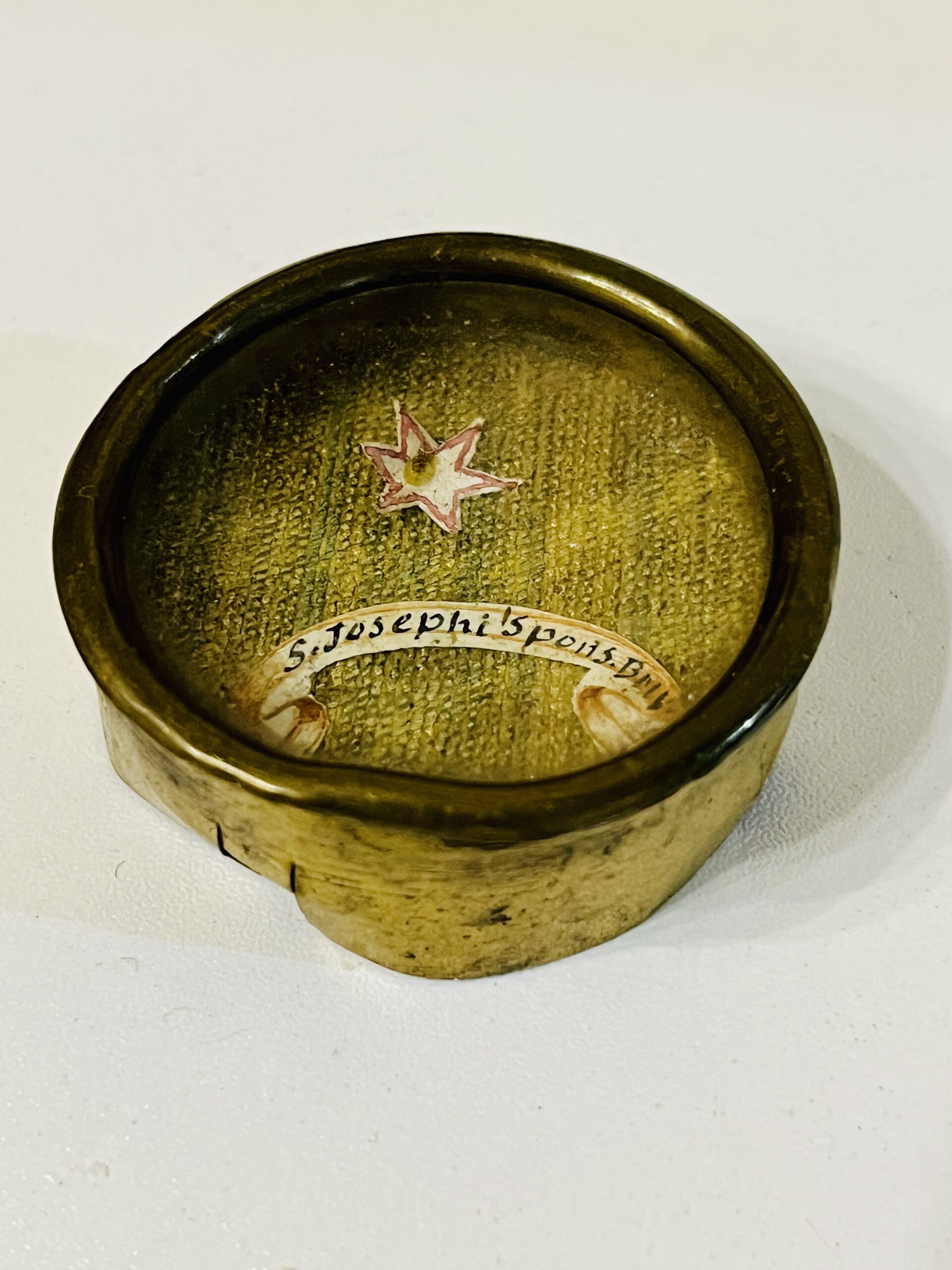 Antiga relíquia de São José, esposo da Virgem Maria, em estojo metálico e com selo de lacre de certificação original