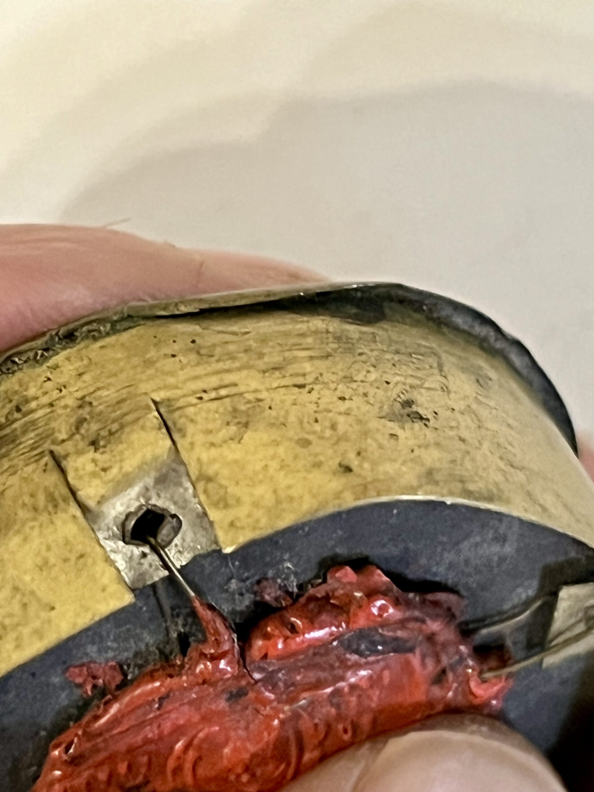 Relíquia original de São Maurício em caixa metálica e tampa, com 3.5 cm x 2 cm